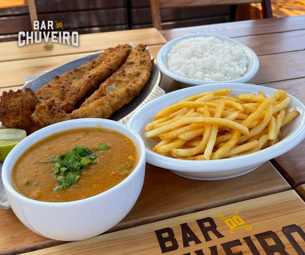 Além dos pastéis, o Bar do Chuveiro oferece um cardápio variado com pratos executivos, petiscos e caldos saborosos, perfeitos para qualquer hora do dia.